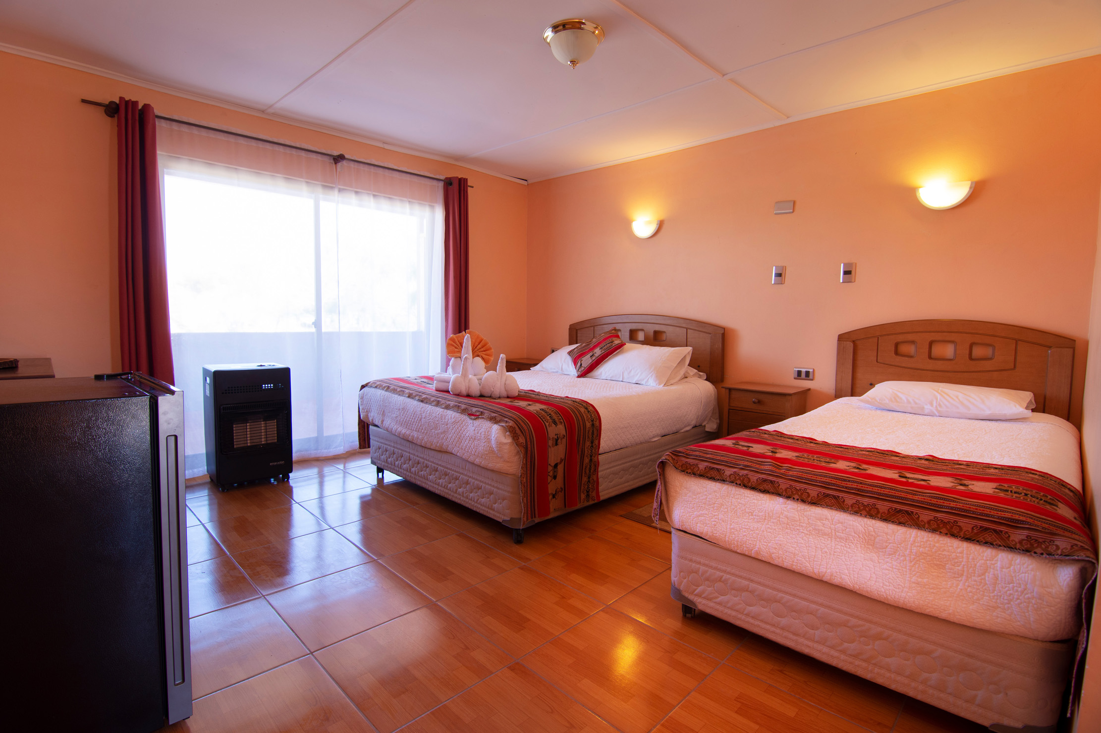 Inti & Killa ofrece amplias habitaciones singles, dobles, triples y cuádruples, todas con baño privado y agua caliente las 24 Hrs del día.